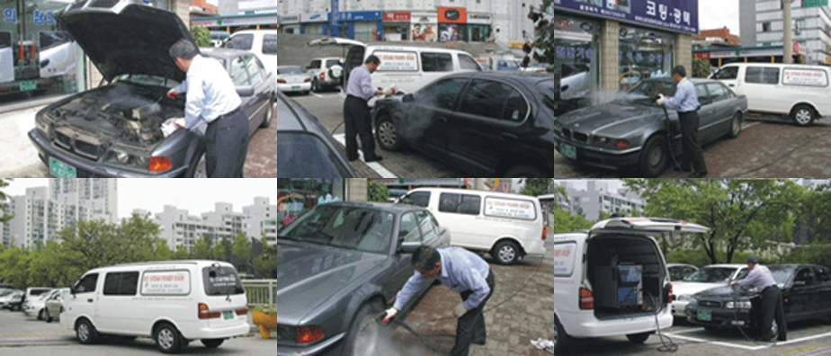 160℃ 의 증기고압분사로 흙먼지 와 묵은 때를 씻어냄으로서 차체 표면상 흠집을 내지 않고 구석구석 깨끗이 닦을 수 있으며 특히 엔진까지도 세척 할 수 있다는 점과 차 본래의 광택을 살릴 수 있다는 장점이 있습니다.
